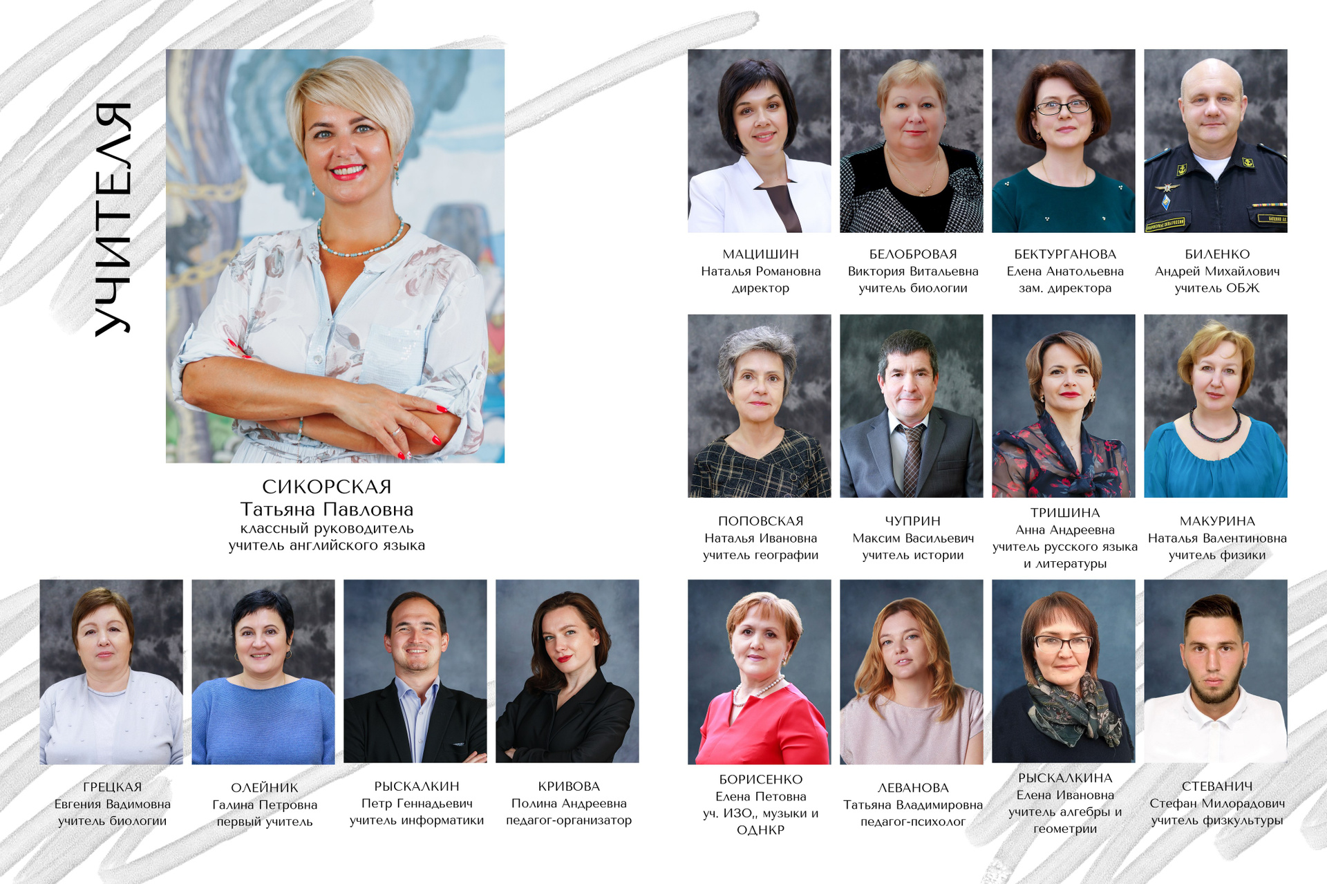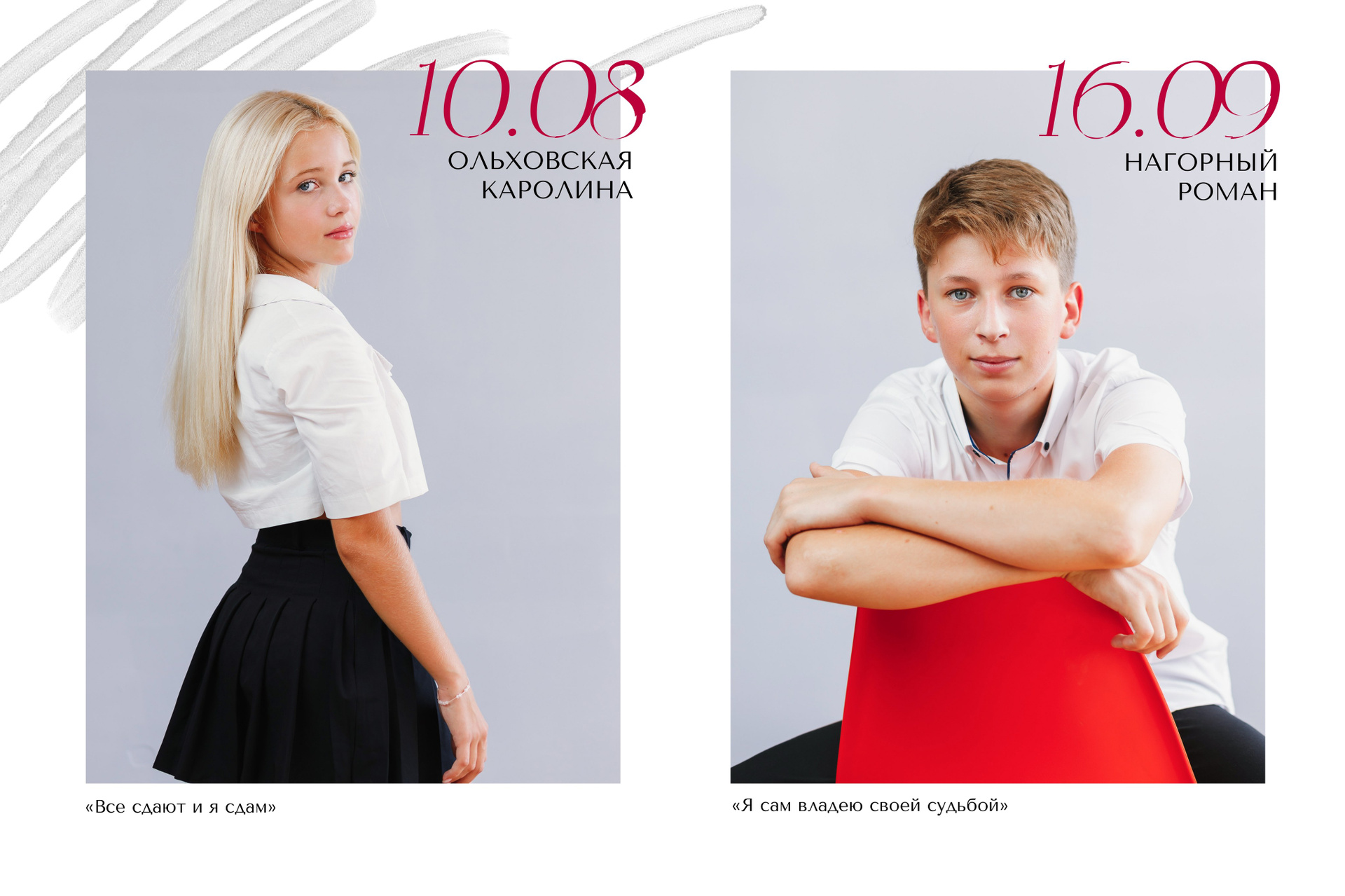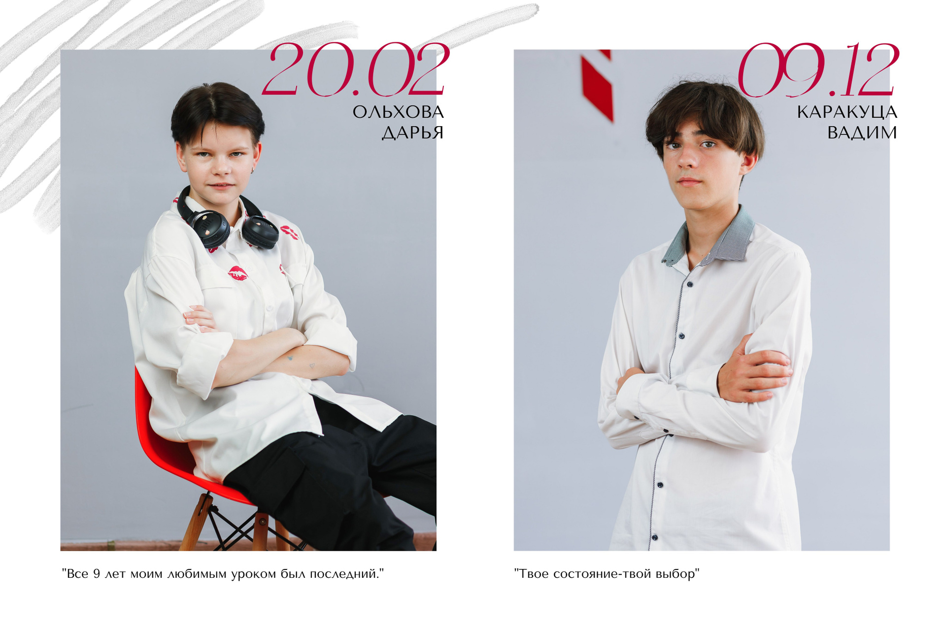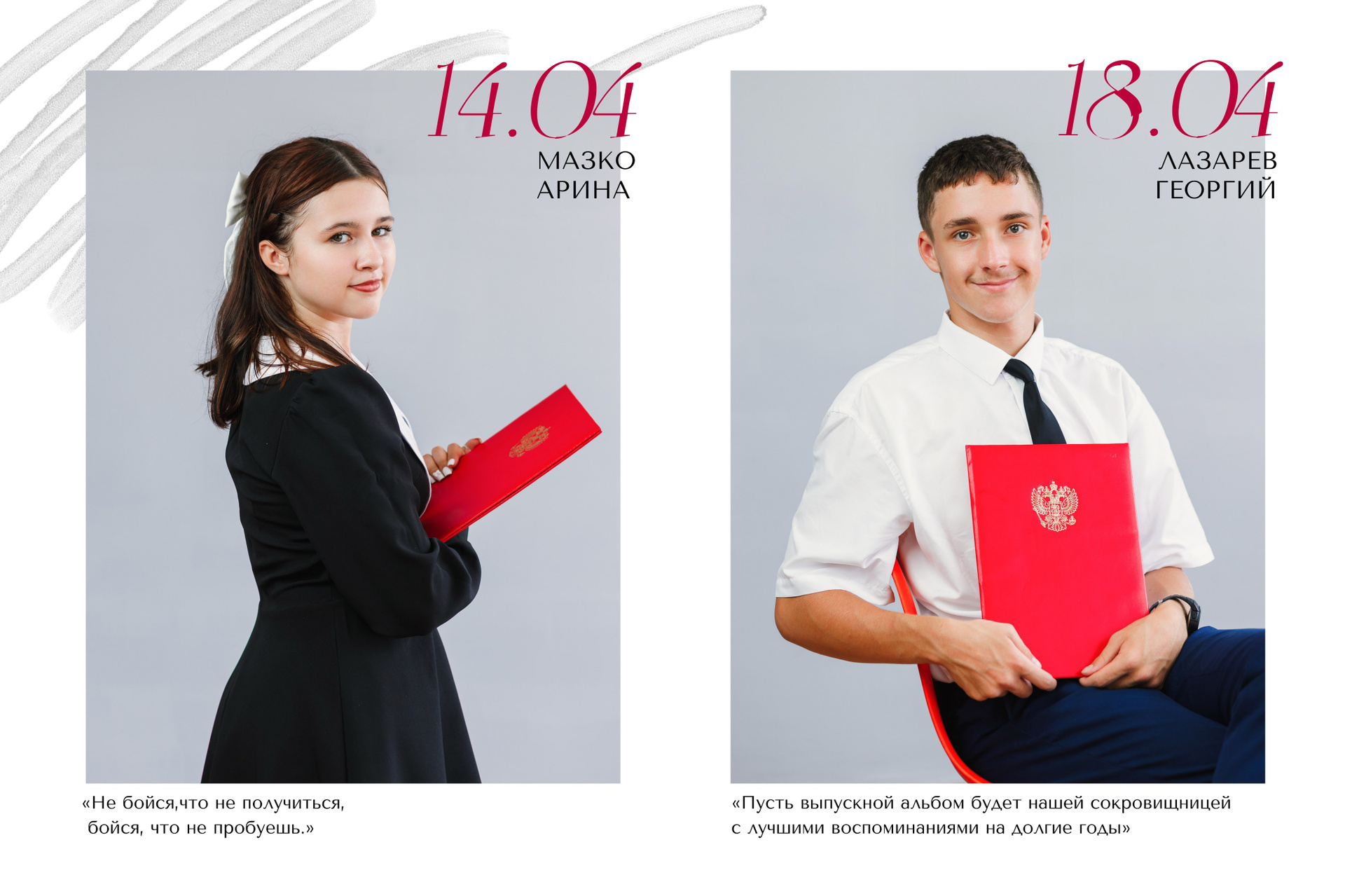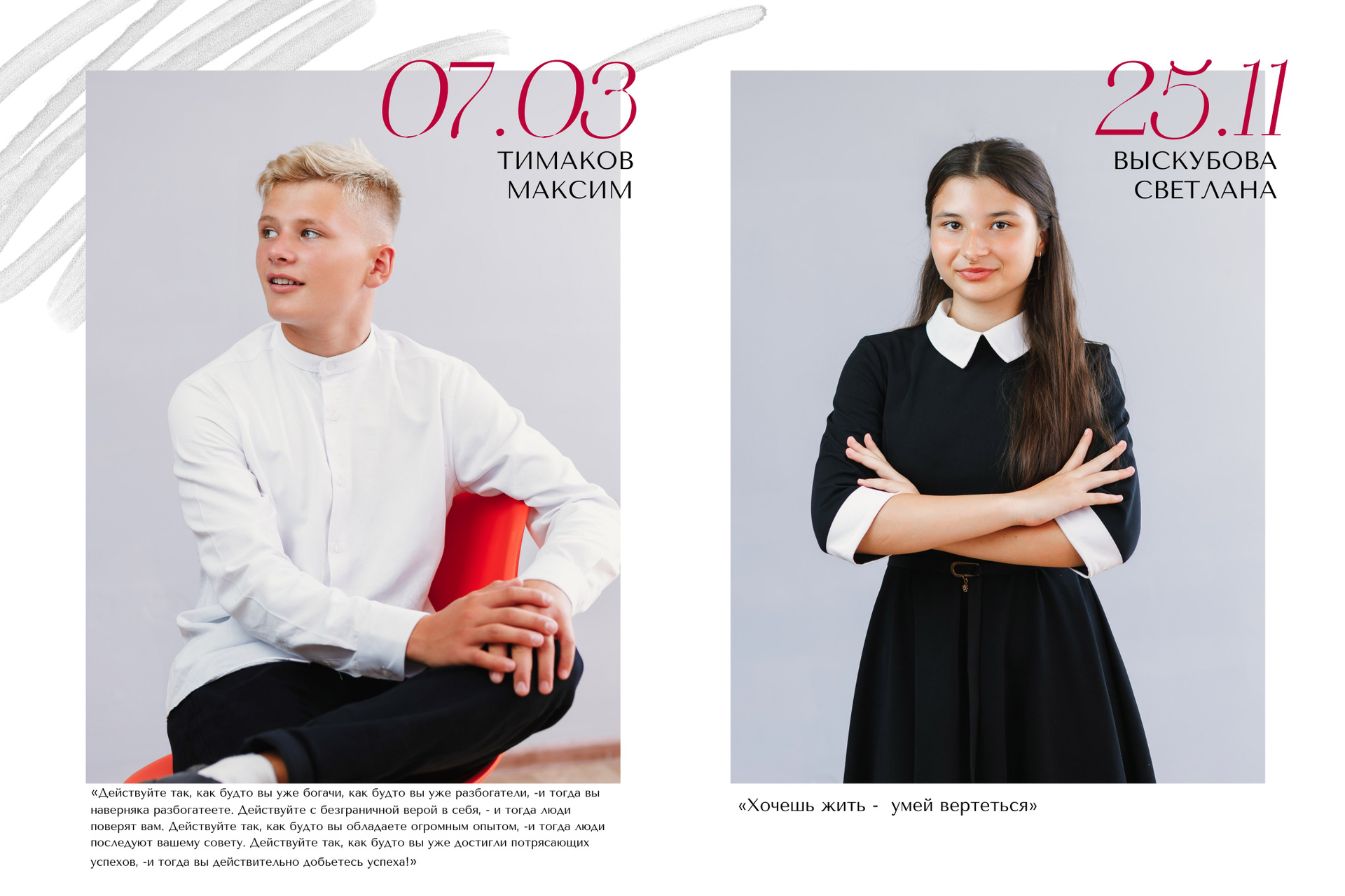 Портреты всех ребят по 2 на разворот с цитатами